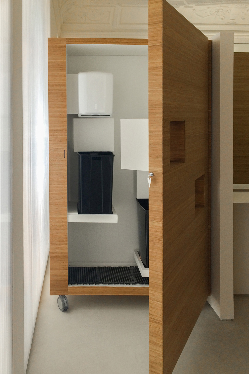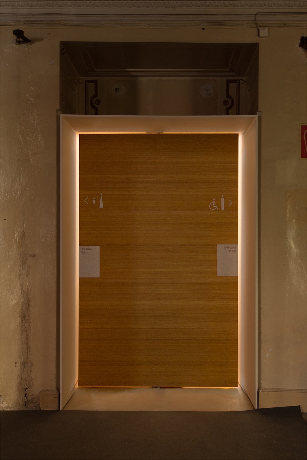 Puerta aseo discapacitados cerrada.